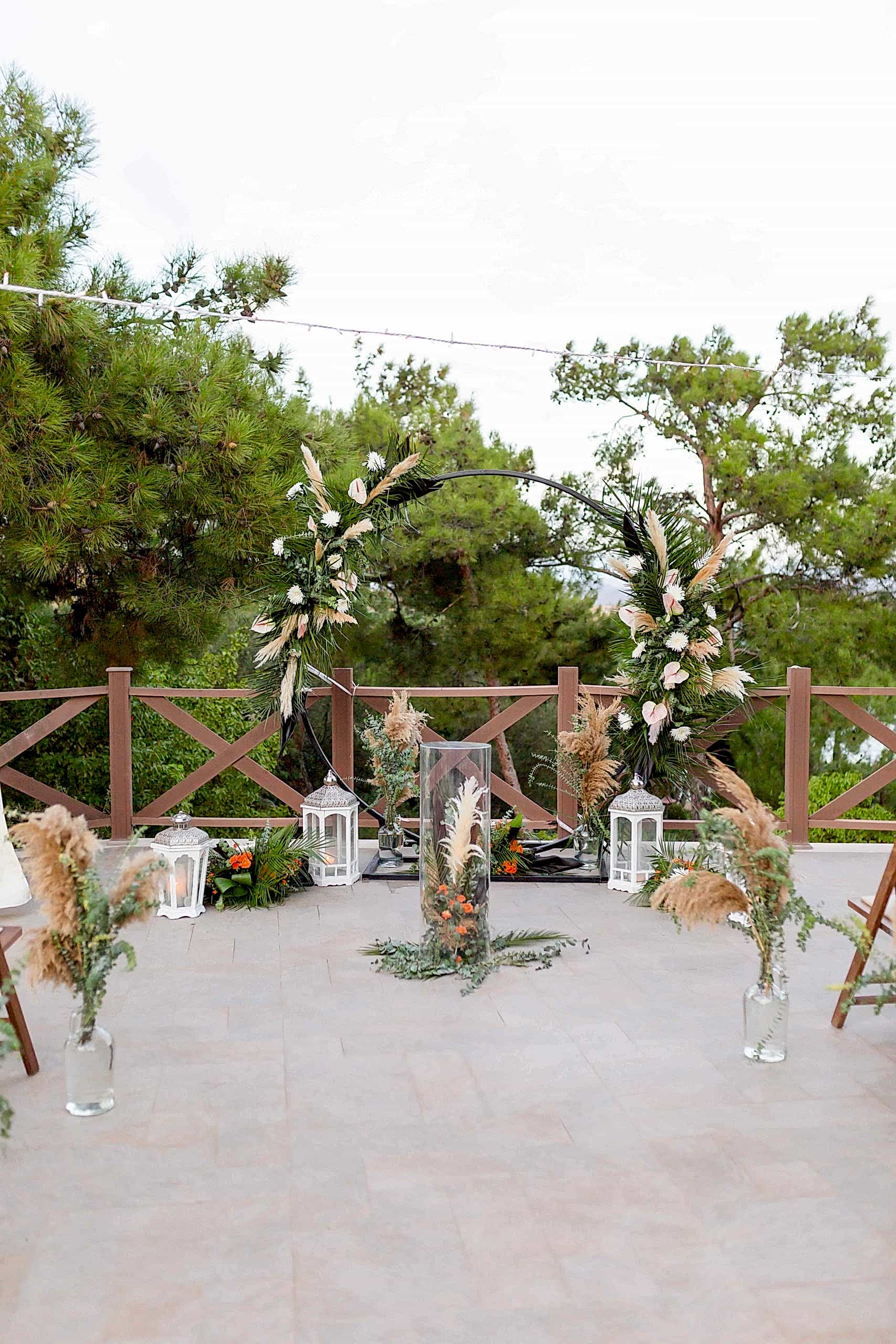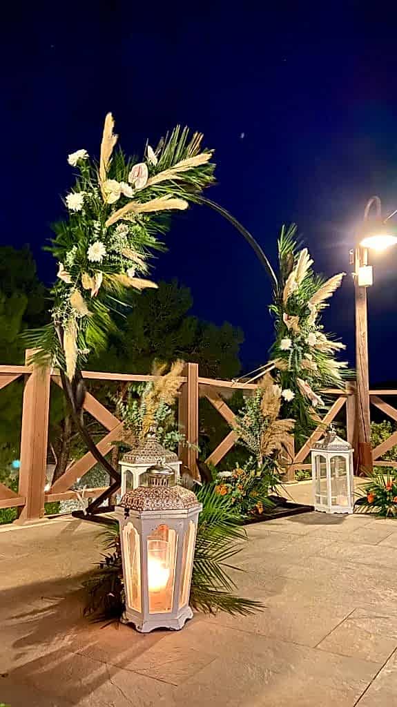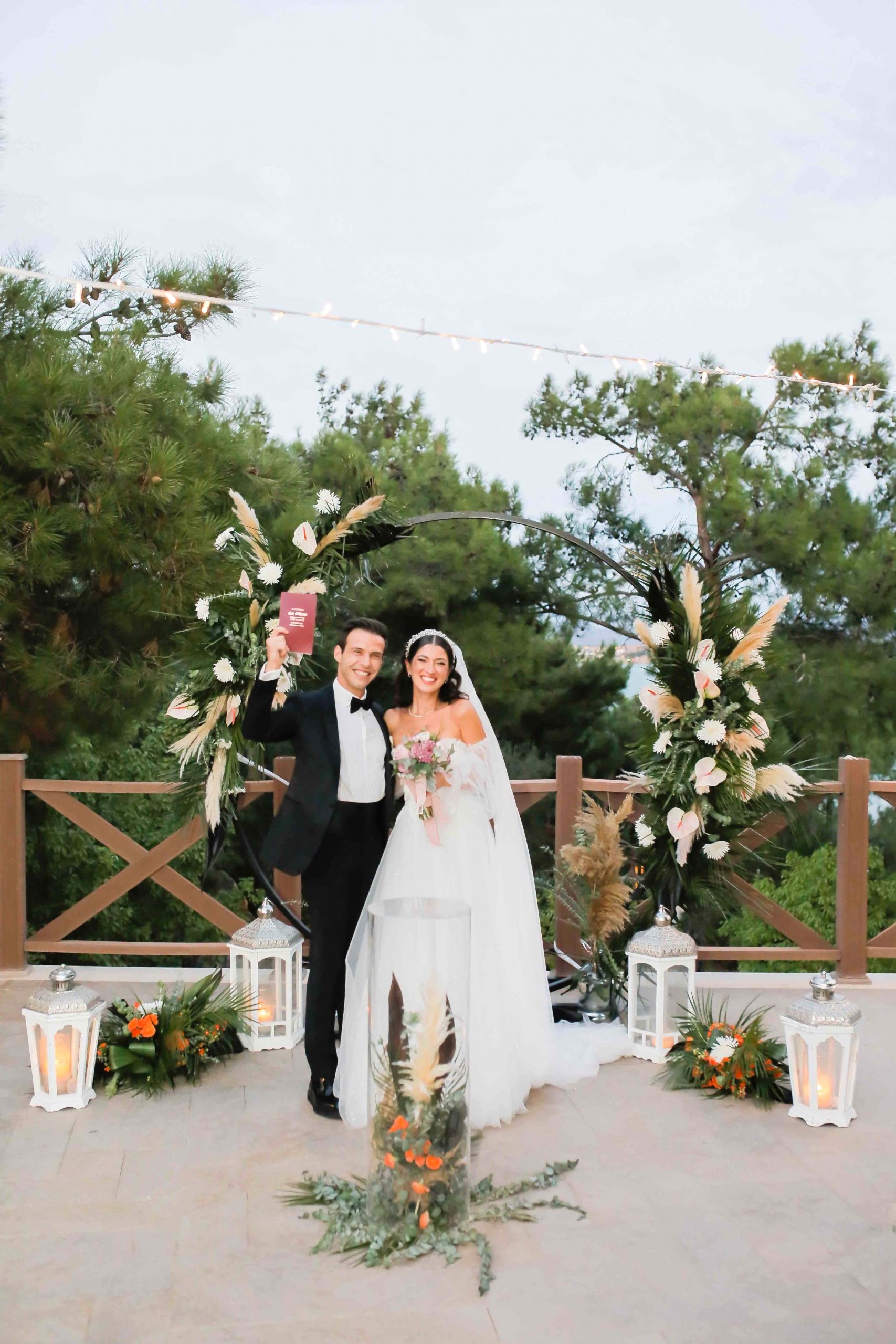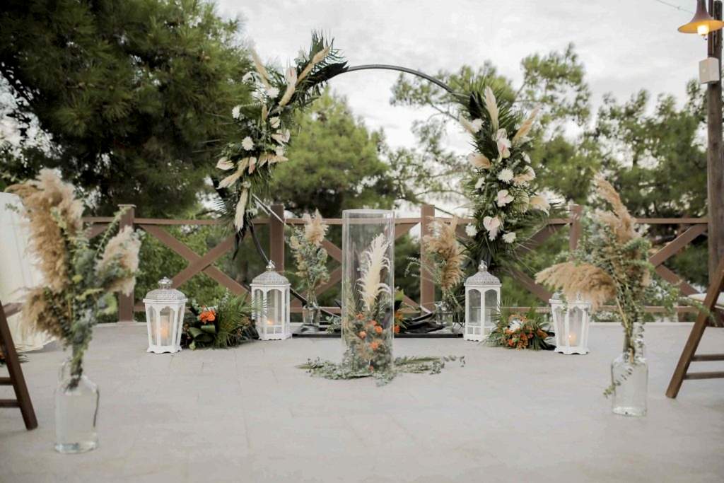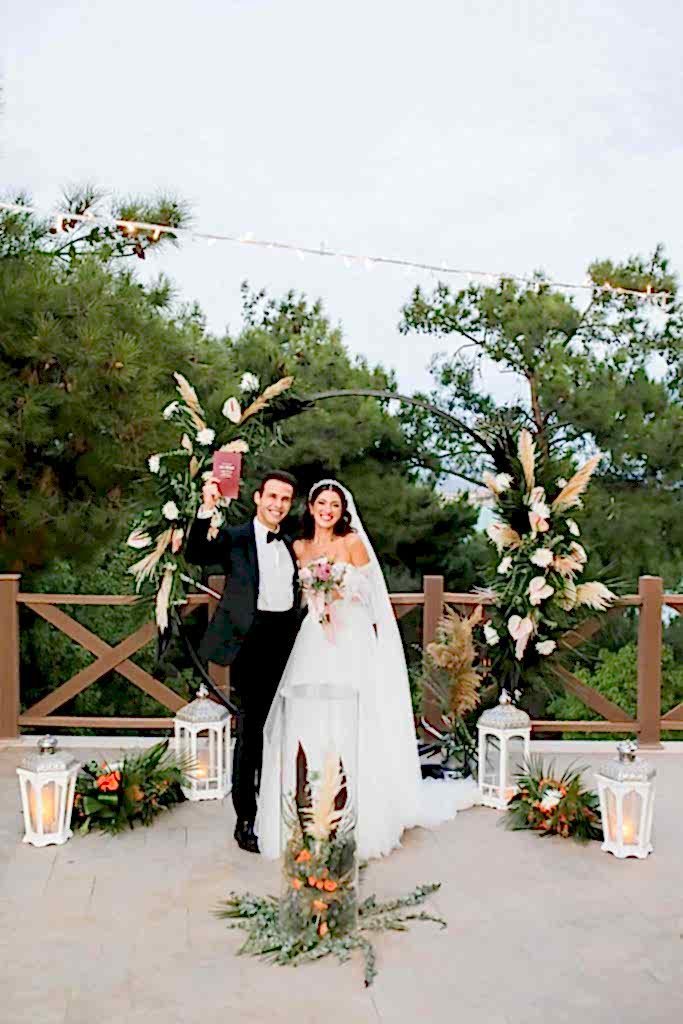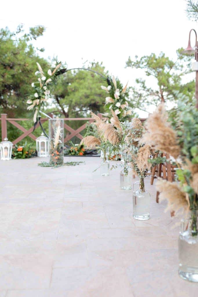 Ayvalık Murat Reis Otel’ de planladığımız bu organizasyonumuzu havuz başında gerçekleştirdik. İthal çiçeklerin yoğun kullanıldığı bu konseptimizde her biri diğerinden güzel ve renkli olan yeşil yapraklar, anastasia antoryumlar, okaliptus, panpas, turuncu güllerimiz, tropik siyah yapraklı çiçeklerimiz ile enfes bir görsel şölen oluşturduk. Giriş yoluna koyduğumuz mumluklarımız ve gemici fenerlerimiz ile romantik bir görsel oluşturduk.
