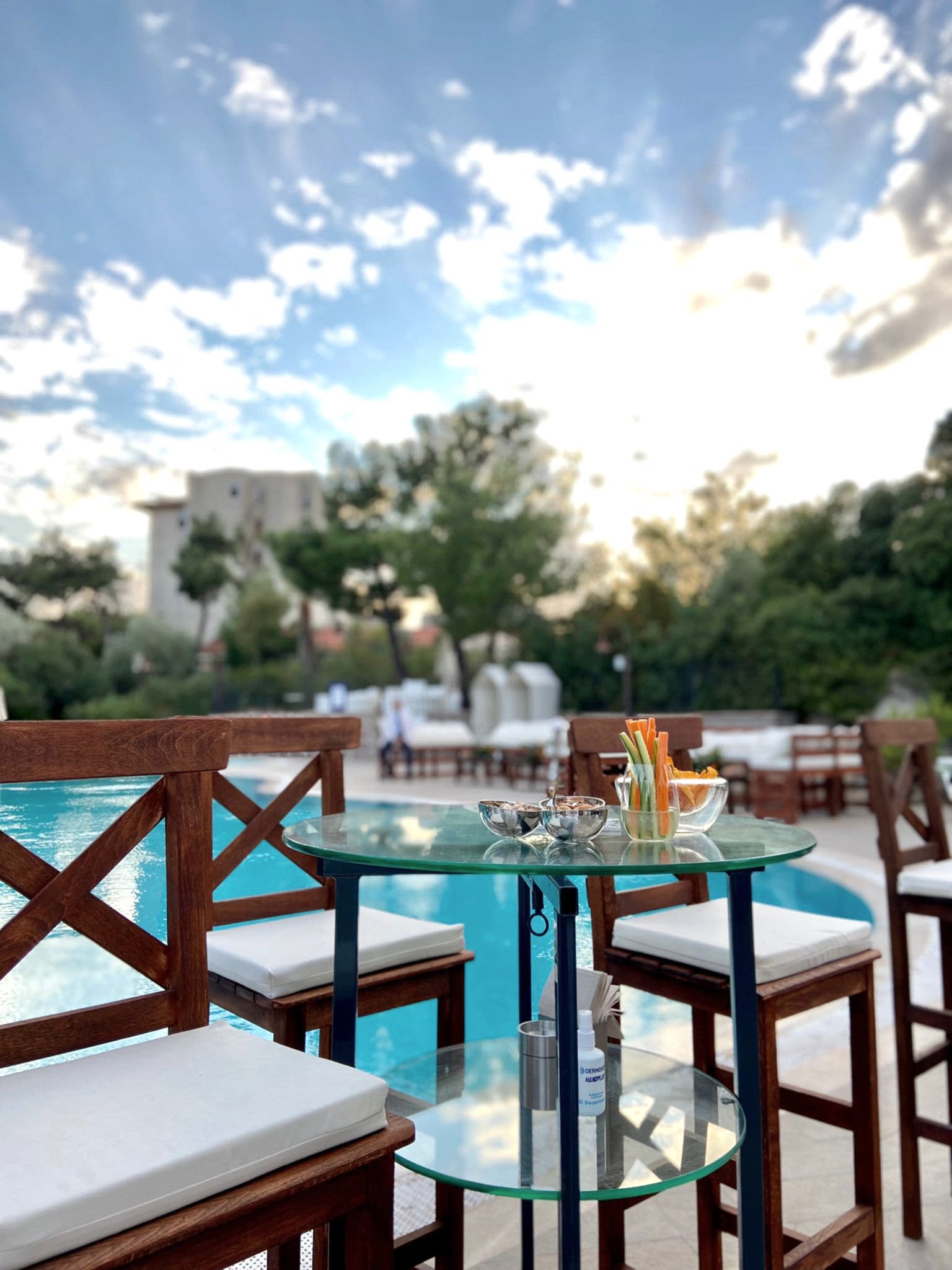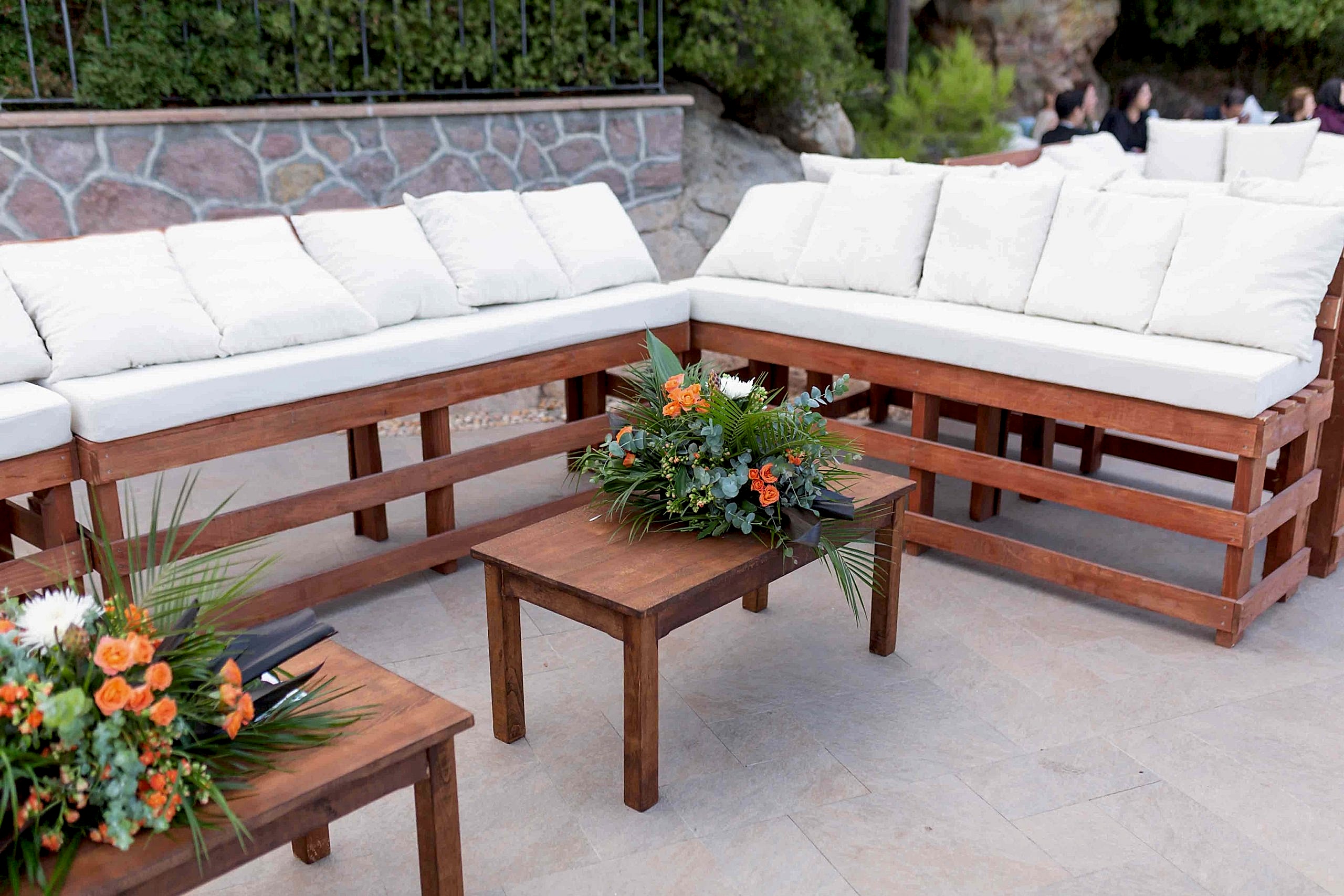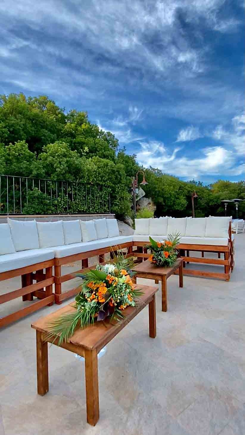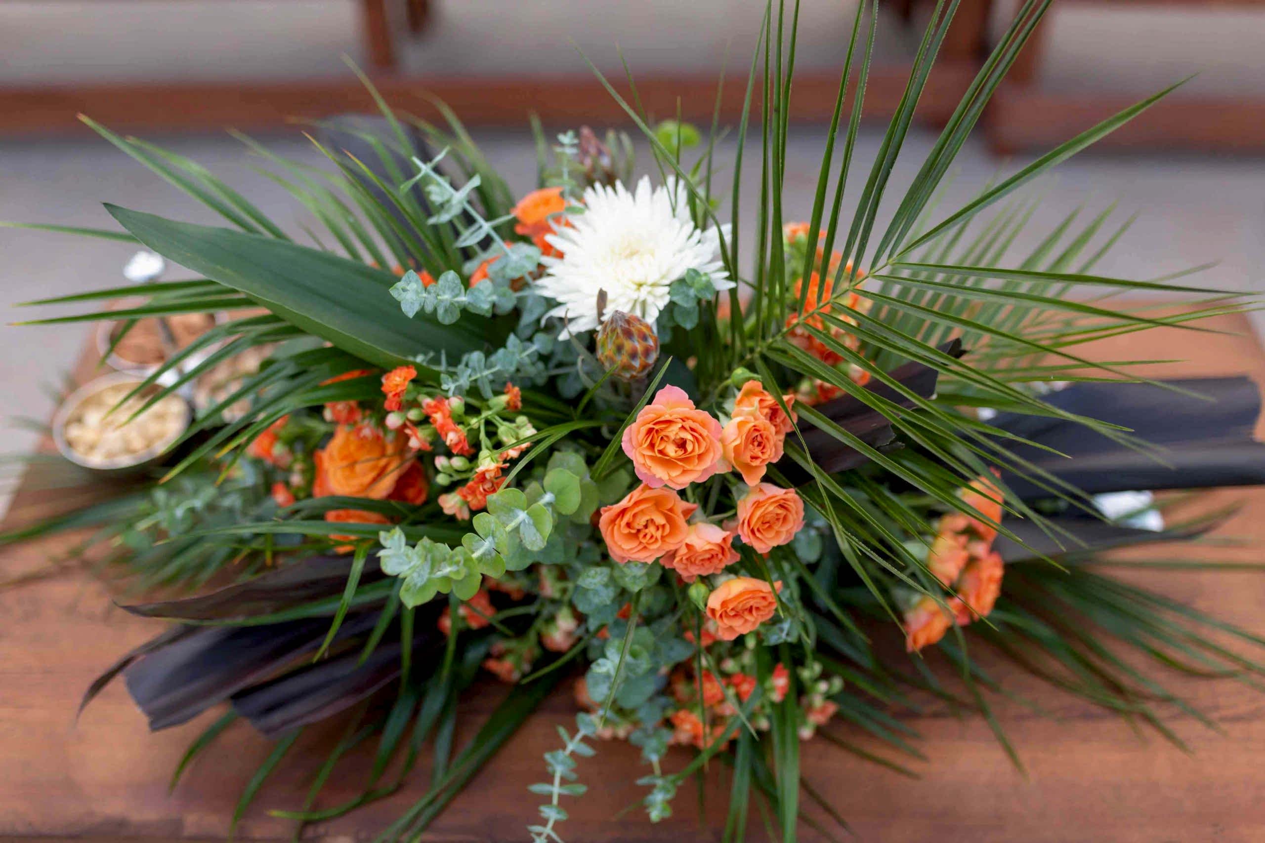 Ayvalık Murat Reis Otel’ de planladığımız bu organizasyonumuzu havuz başında gerçekleştirdik. İthal çiçeklerin yoğun kullanıldığı bu konseptimizde her biri diğerinden güzel ve renkli olan yeşil yapraklar, anastasia antoryumlar, okaliptus, panpas, turuncu güllerimiz, tropik siyah yapraklı çiçeklerimiz ile enfes bir görsel şölen oluşturduk. Giriş yoluna koyduğumuz mumluklarımız ve gemici fenerlerimiz ile romantik bir görsel oluşturduk.