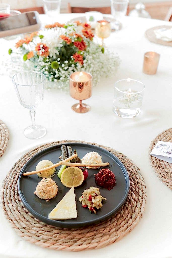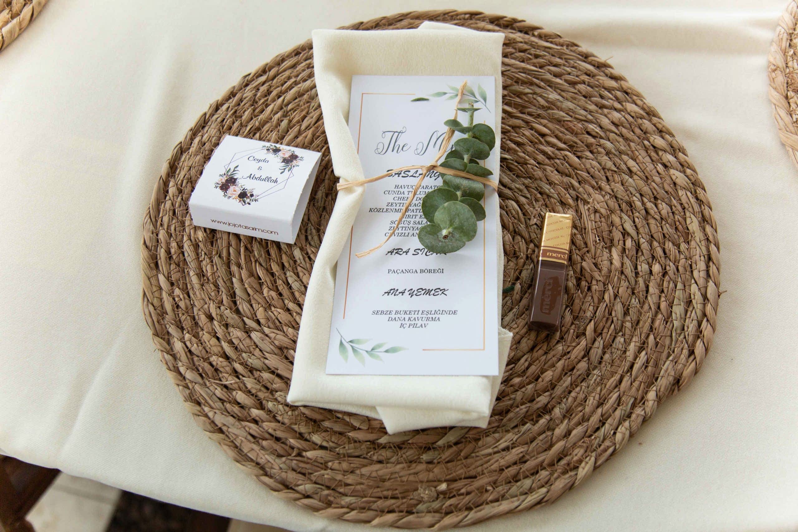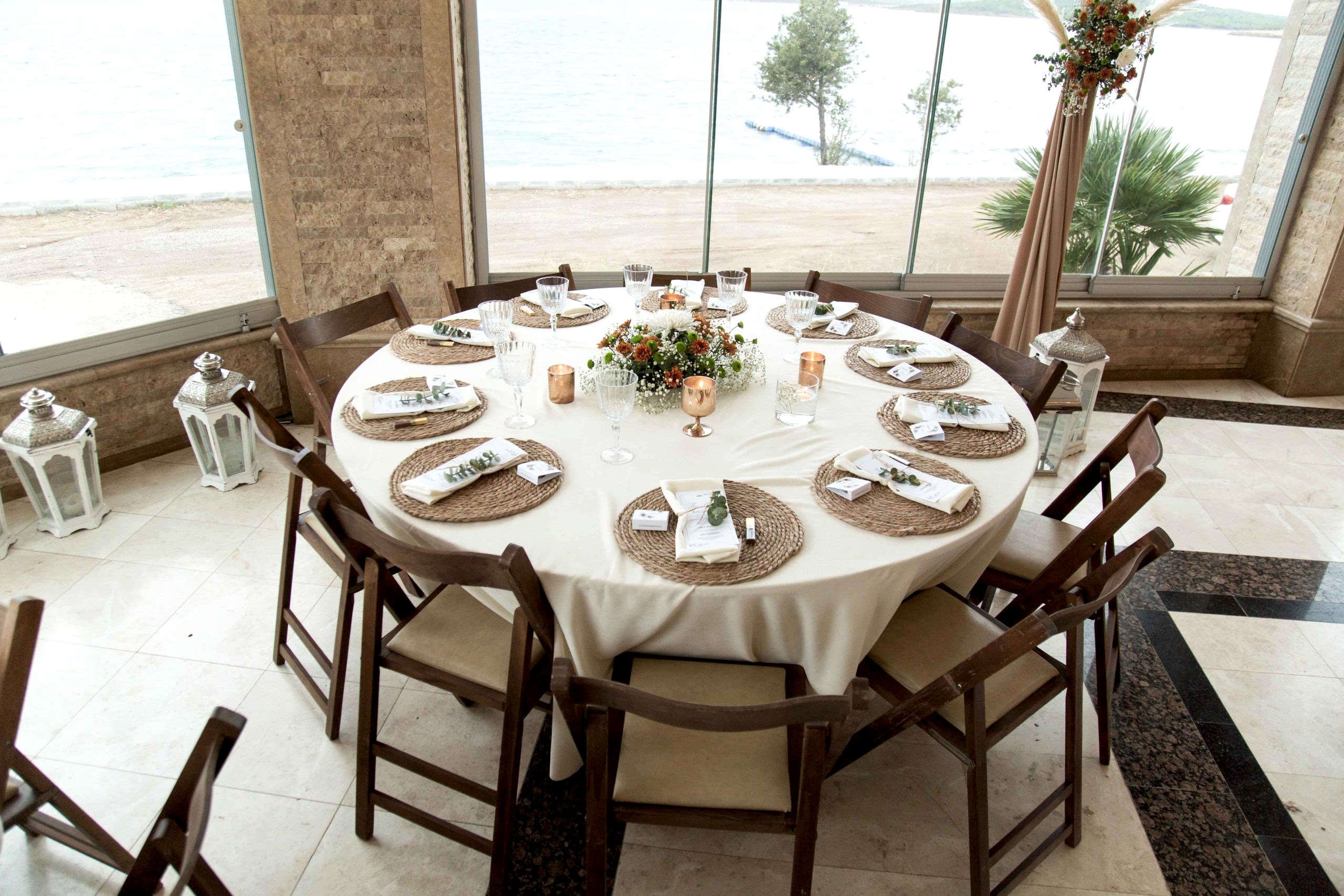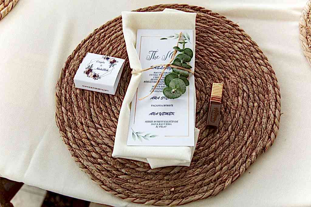 Masalarda ise beyaz disbud çiçeklerinin, turuncu güllerin ve cipsoların bulunduğu samimi bir ortam hazırladık. Masa mumluklarımız, hasır suplalarının, kumaş peçete havluların kusursuz görüntüsüyle görsel bir şölen yakaladık.