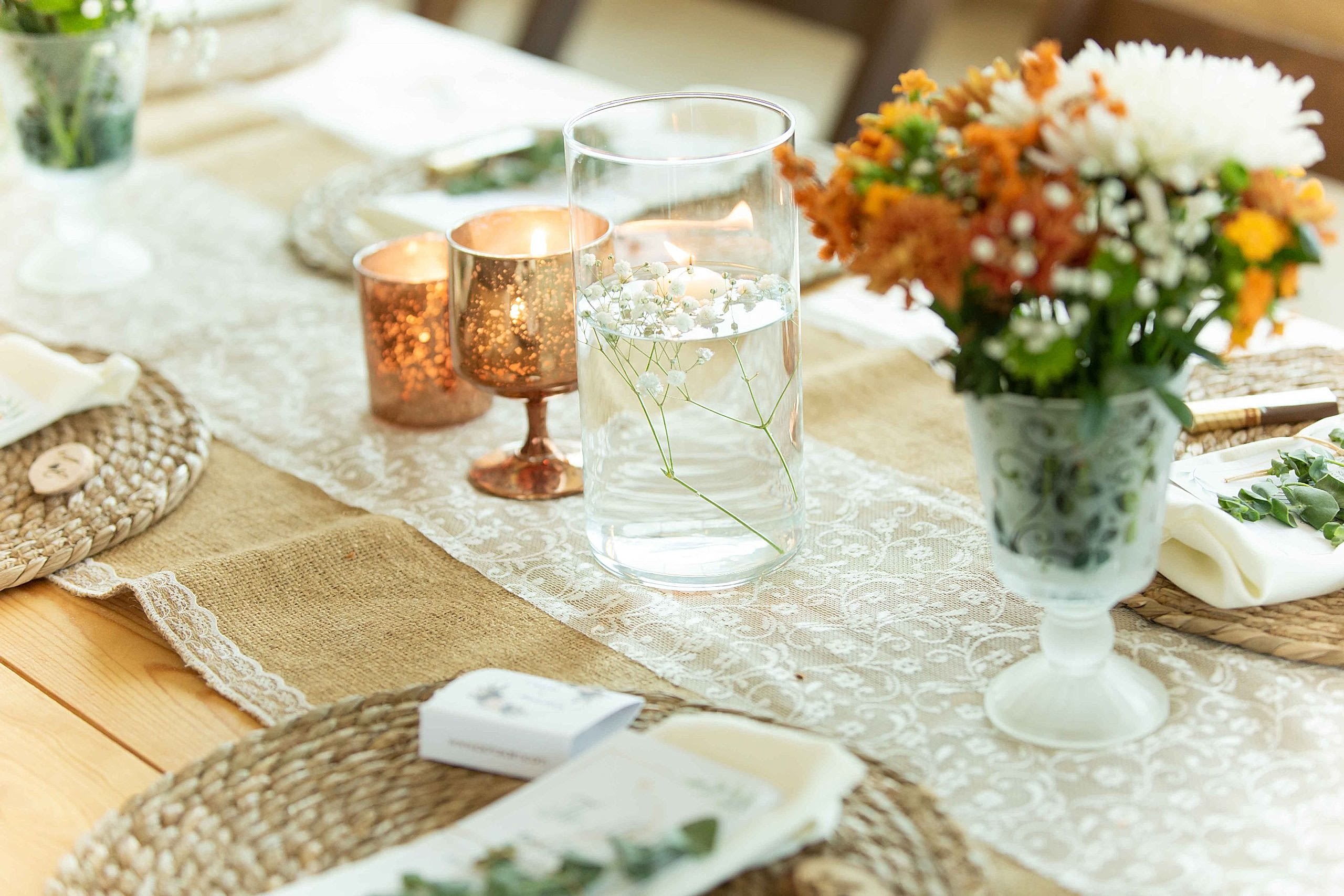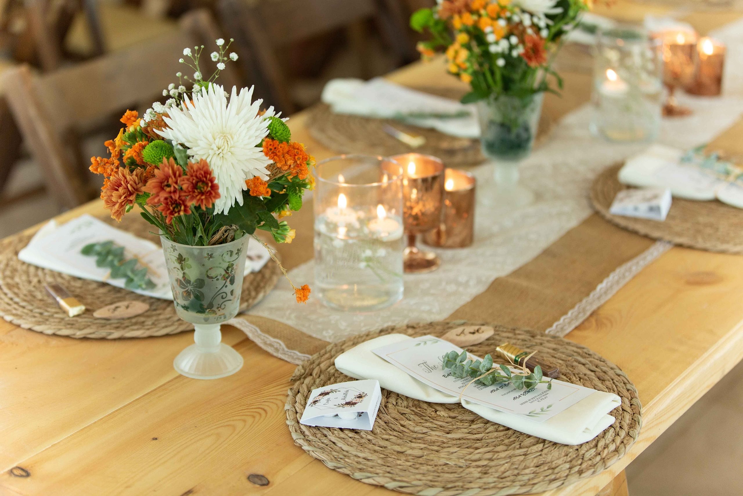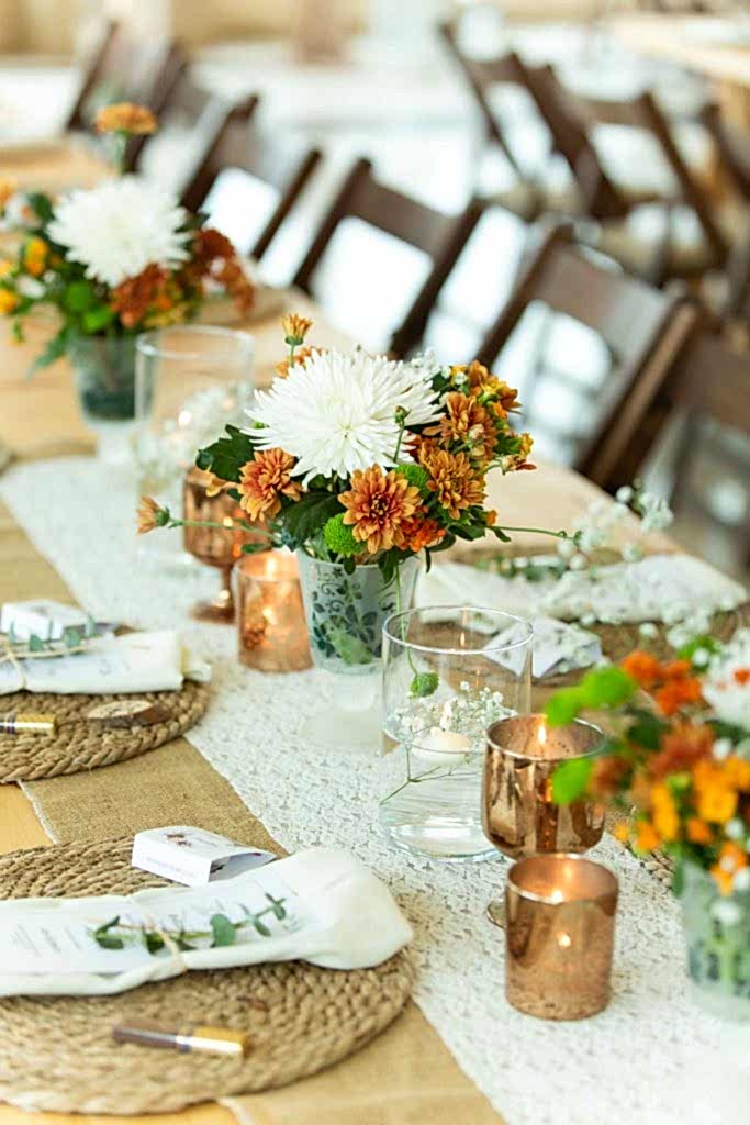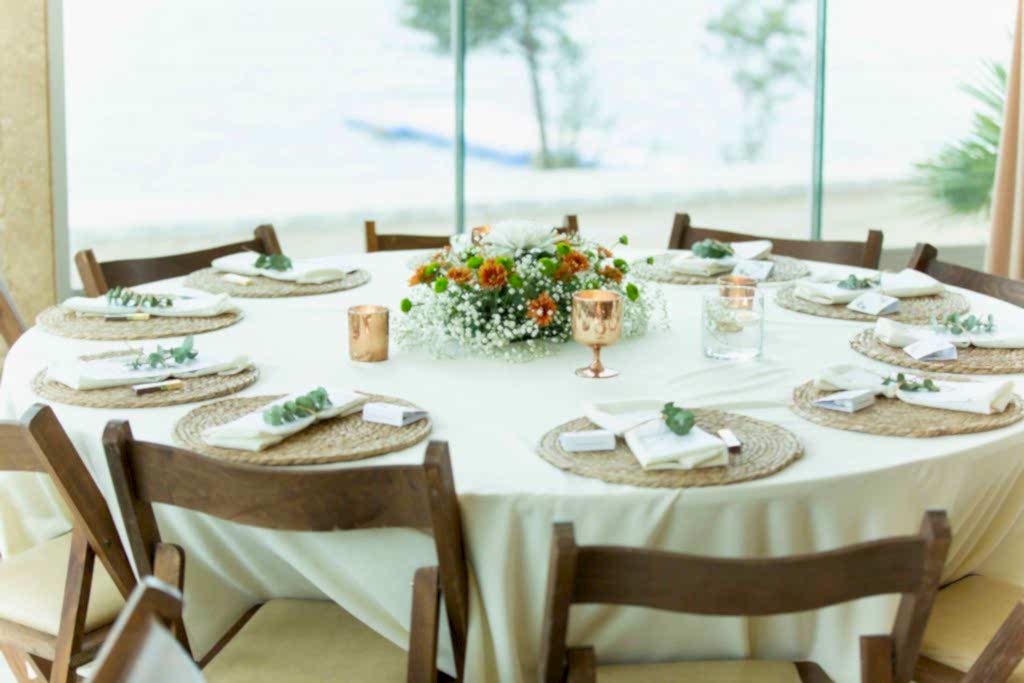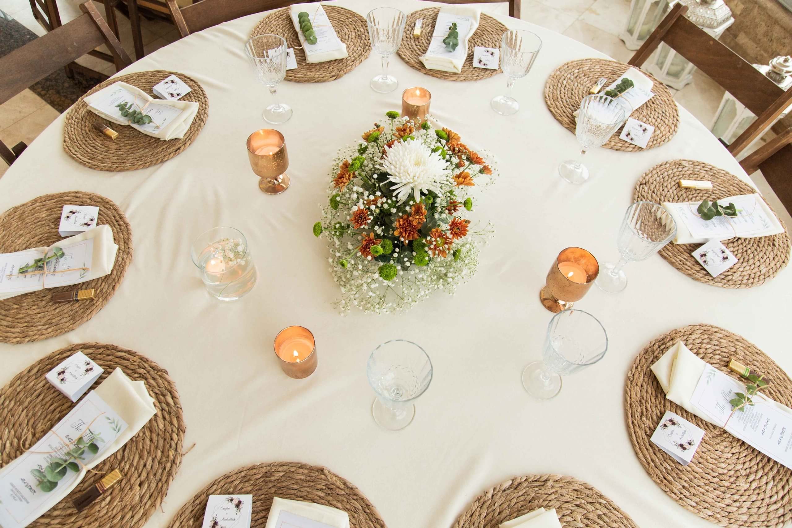 Masalarda ise beyaz disbud çiçeklerinin, turuncu güllerin ve cipsoların bulunduğu samimi bir ortam hazırladık. Masa mumluklarımız, hasır suplalarının, kumaş peçete havluların kusursuz görüntüsüyle görsel bir şölen yakaladık.