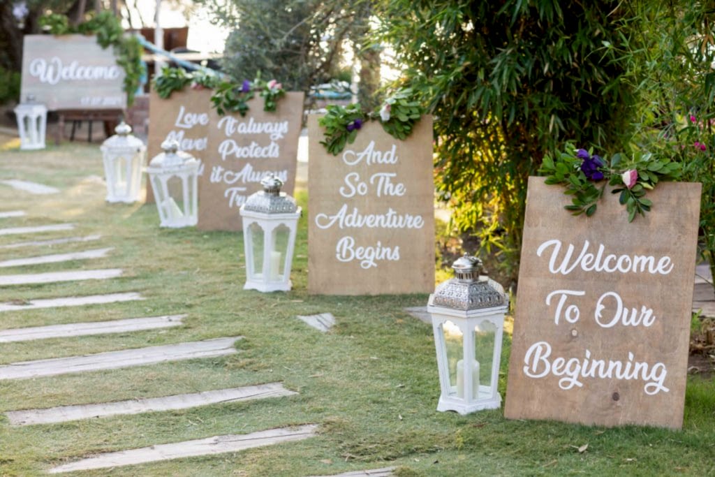 Yine giriş de kullandığımız ve çiftlerimizin çok sevdiği karşılama panomuzu sarmaşık yapraklarıyla süsledik.