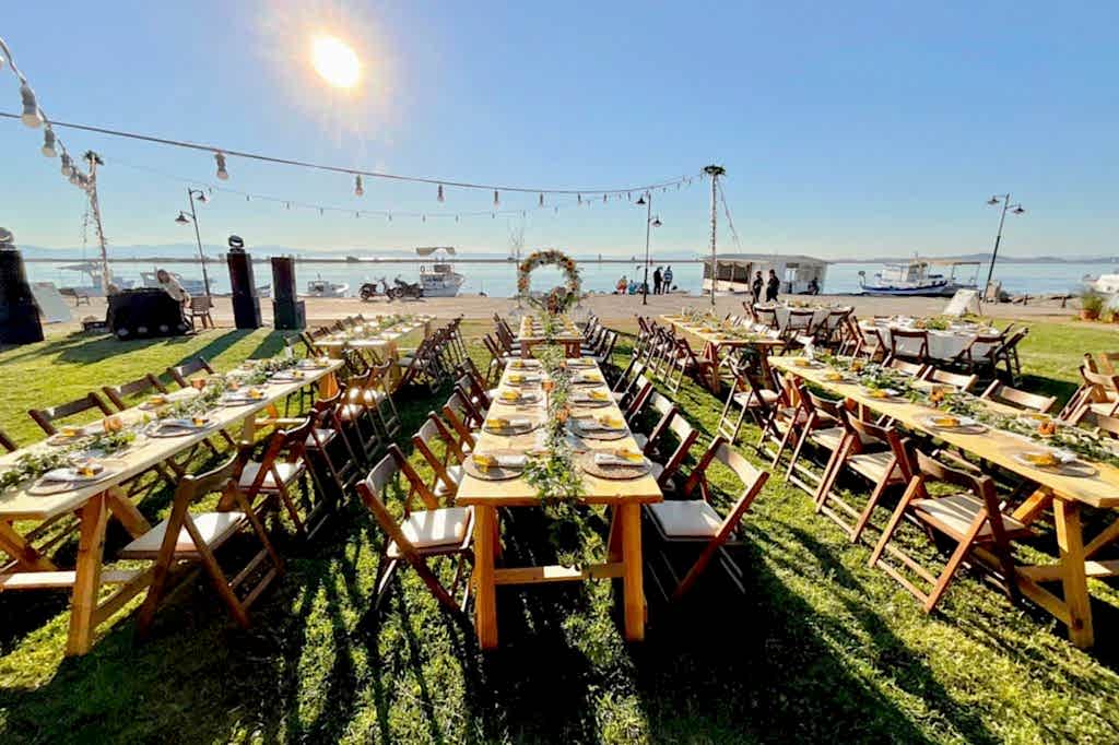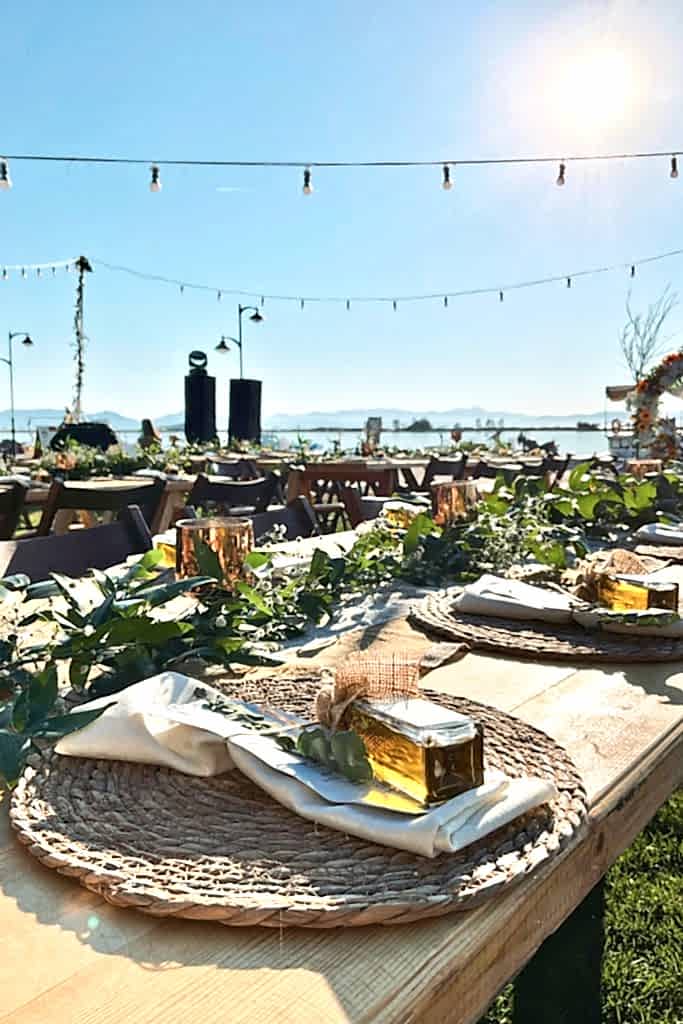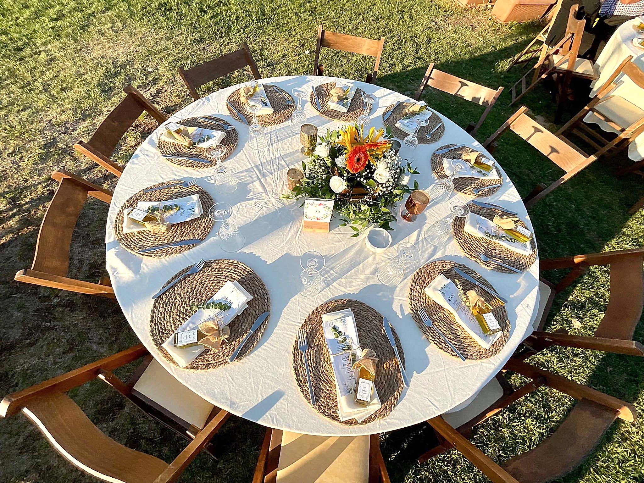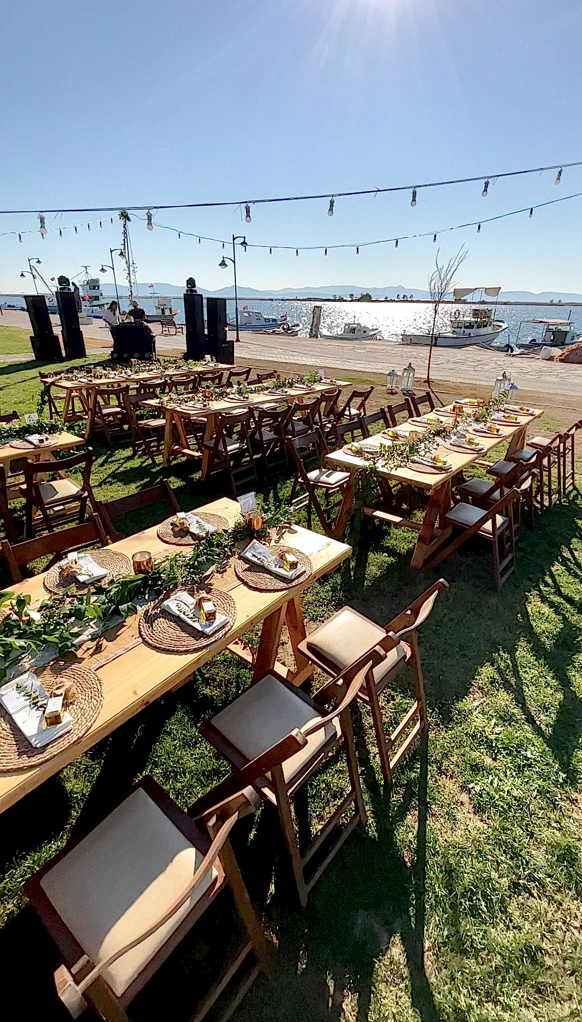 Denizin kıyısındaki mekana ahşap masalarımız ve yuvarlak masalarımızı kullanarak bir konsept oluşturduk. Hasır suplalarımızın ve turuncu ağırlıklı canlı çiçeklerimizin yoğunlukta olduğu nişan organizasyonumuza gelin hep birlikte bakalım.